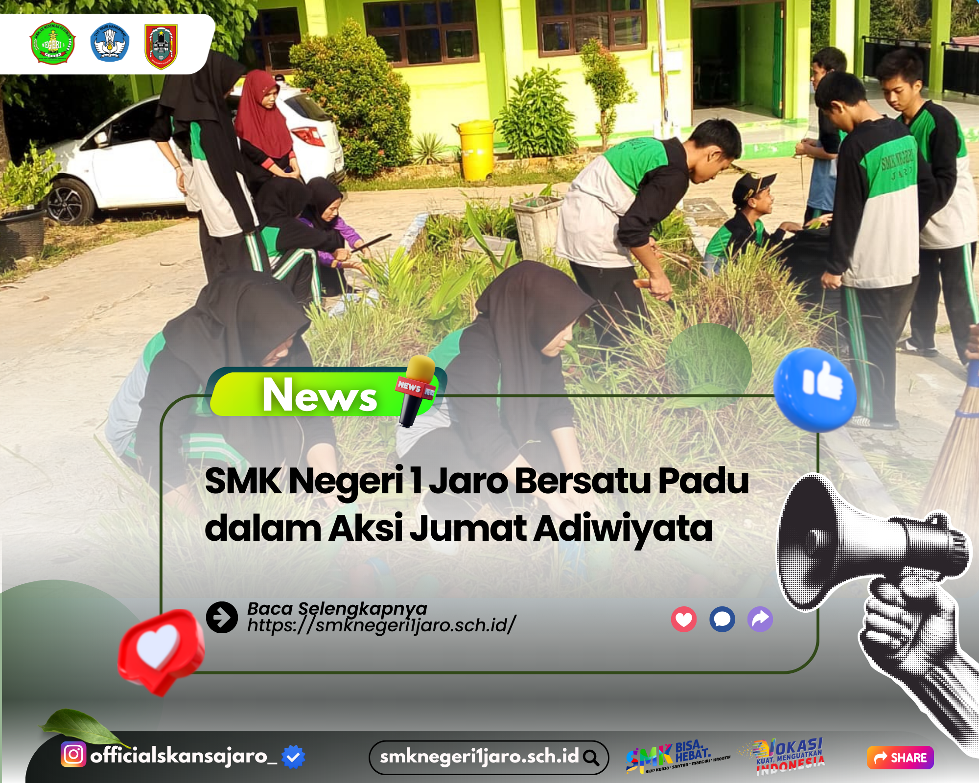 Kegiatan Jumat Adiwiyata ini diharapkan tidak berhenti sebagai seremonial semata, melainkan menjadi budaya yang terus diterapkan dalam keseharian warga sekolah. Dengan semangat "Bersih Lingkungan, Cermin Hati Bersih", SMK Negeri 1 Jaro berkomitmen menciptakan lingkungan belajar yang sehat, nyaman, dan berkelanjutan.